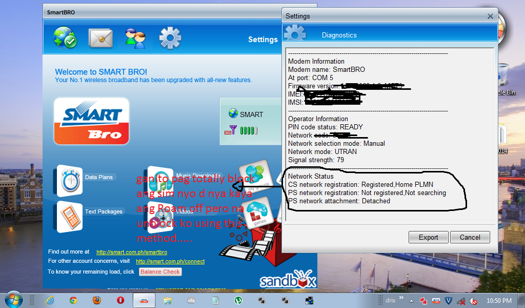 1. Pag ididisconnect na ang SMART BRO MODEM Please do ROAM OFF and GPRS ON Trick.